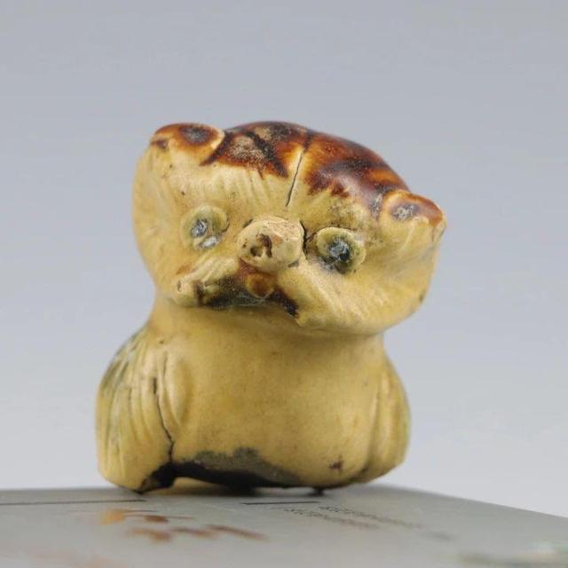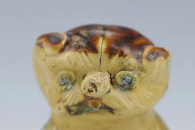 “策划此次玩具展,源于今年4月14日出土的一只长沙窑黄釉褐彩瓷狗形玩具。”刘芳芳介绍,给予她灵感和动力的瓷狗,出土于苏州姑苏区道前街北遗址,这只瞪着两只圆鼓鼓大眼睛的玩具狗,由唐代长沙窑高温烧制,推测“年龄”已超过1200岁。瓷狗高7.3厘米,重143.3克,通体施黄釉,头部及四肢有褐彩。四腿伫立,舌头半吐,平视前方,似乎在观察什么。“它的主人大概非常喜欢它,经常带它玩耍,四肢可能在玩耍时不小心碰坏了。”
