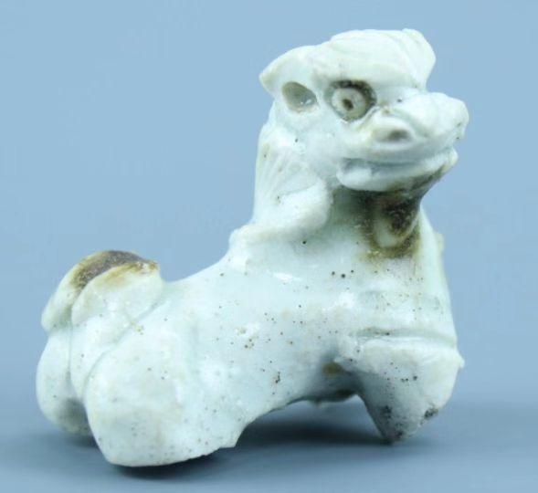 “古代的孩子也会把玩玩偶、手办,只不过玩具的材质不同。”比如即将展出的一只宋代青白釉褐彩小狮子。它出土于苏州市姑苏区道前街北遗址,系北宋时期湖田窑产品,青白釉瓷,头顶有分束毛发,下颌有毛须拂动,颈后饰有飘动鬃毛,尾巴向一侧耷在臀部,瞳孔及眼白边缘有褐釉点彩,侧目迎风傲视。造型精美,惟妙惟肖。