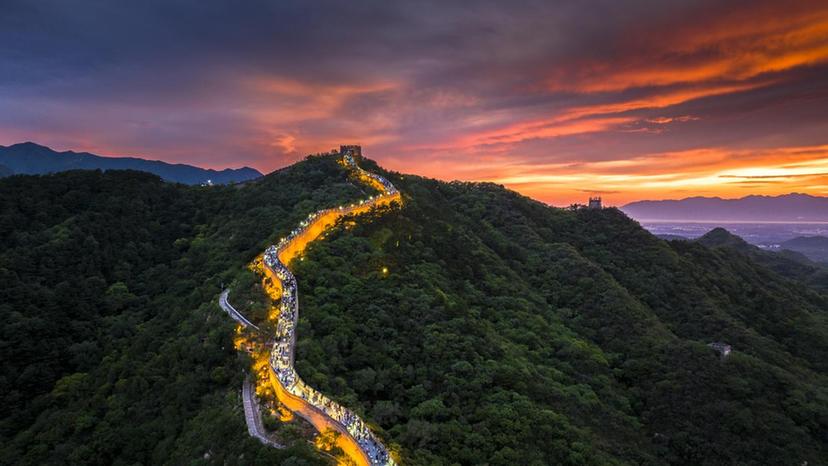 八达岭夜长城延续精彩,用光影技术将古老城墙化作巨型幕布,游客可欣赏“飞焰横天”的绝美夕阳,还能感受“长城夕照”的历史震撼,在与戎装将士的互动中,体验“一步一景一故事”的沉浸式游览。
