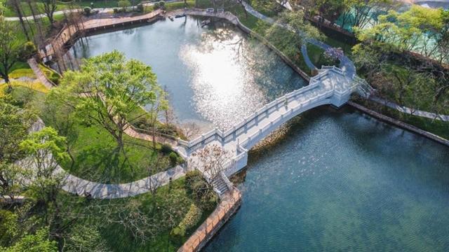 越秀拿下第一期地块后,秉承「长期主义」的匠心,第一件事就是远赴成都麓湖学习治湖秘诀,回来后把太阳湖和月亮湖进行全面治理,经历了湖水治理、水生植物养殖,形成生态自循环。