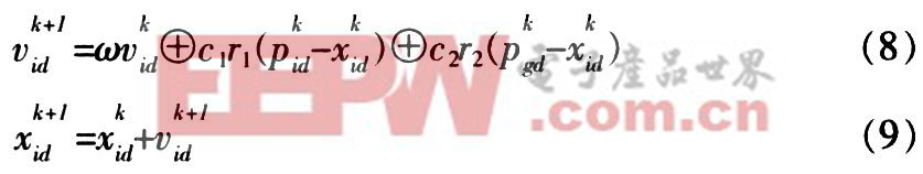 式中,c1与c2是两个正的常数,称为加速因子,r1和r2为分布于[0,1]间的随机数。